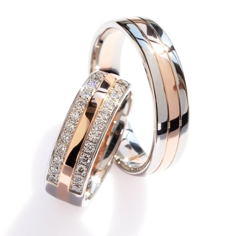 Trauringe in Palladium und Roségold mit Labor Brillanten