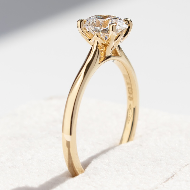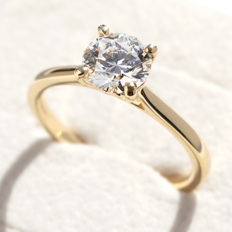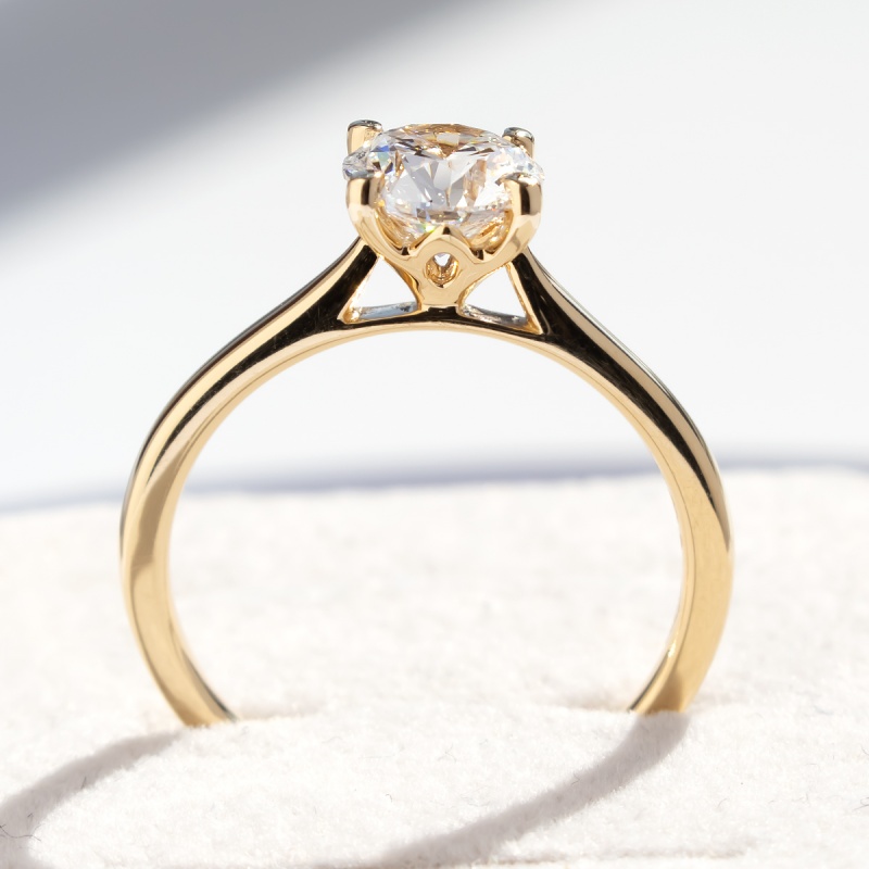 Ein Vier-Krappen-Verlobungsring in Gelbgold ist ein klassischer und eleganter Ringstil, der zeitlose Schönheit mit einem Hauch von Tradition vereint. Diese Fassung gibt dem Stein Halt, lässt aber gleichzeitig viel Licht an ihn heran - was den Funkel-Effekt (Brillanz) verstärkt. Die Kombination aus warmem Gold und dem klaren Funkeln des Brillanten steht für Liebe, Beständigkeit und Eleganz.