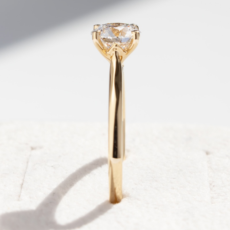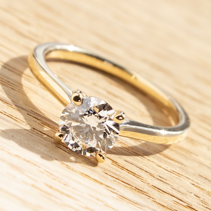 Dieser Ring wird mit einem im Labor gezüchteten Diamanten im Brillantschliff geliefert.